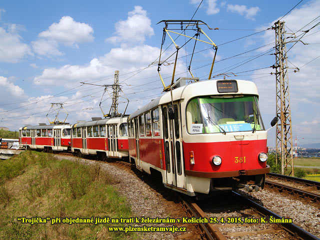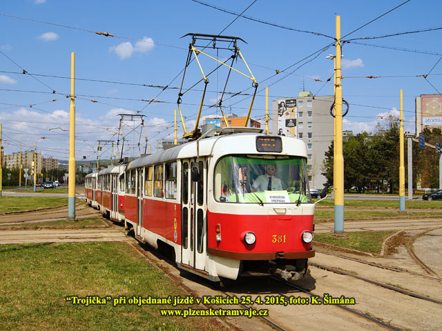 Trojička oři objednané jízdě v Košicích 25. 4. 2015, foto: K. Šimána Trojička oři objednané jízdě v Košicích 25. 4. 2015, foto: K. Šimána Česká legislativa mnoho let neumožňovala provoz trojic v pravidelném provozu, neboť délka třívozové soupravy překračovala maximální povolenou délku tramvajové soupravy. V bývalém Československu byly trojice v pravidelném provozu nasazovány pouze v Košicích, kde byly provozovány na rychlodráze k železárnám. Dnes tam již však není taková frekvence cestujících a trojice nejsou potřeba.