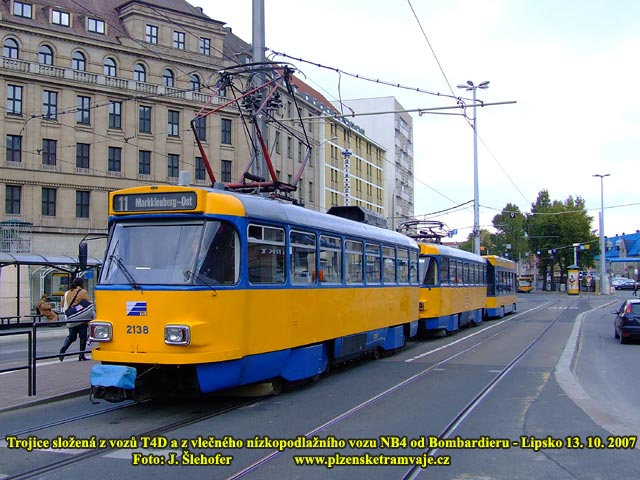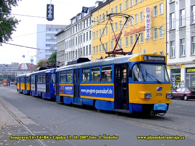 Lipsko 13. 10. 2007 Lipsko 13. 10. 2007 Trojice ve složení dvou motorových a jednoho vlečné vozu jsou stále nasazovány v německém Lipsku. A to jak s původními vlečnými vozy B4, tak i s novými nízkopodlažními od výrobce Bombardier.