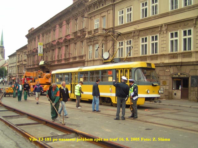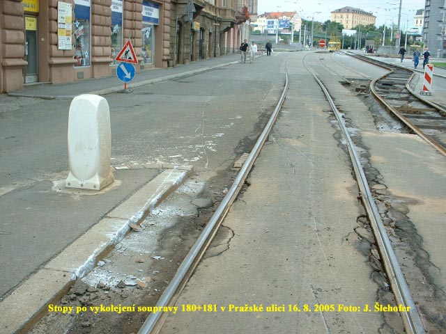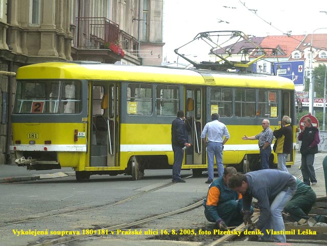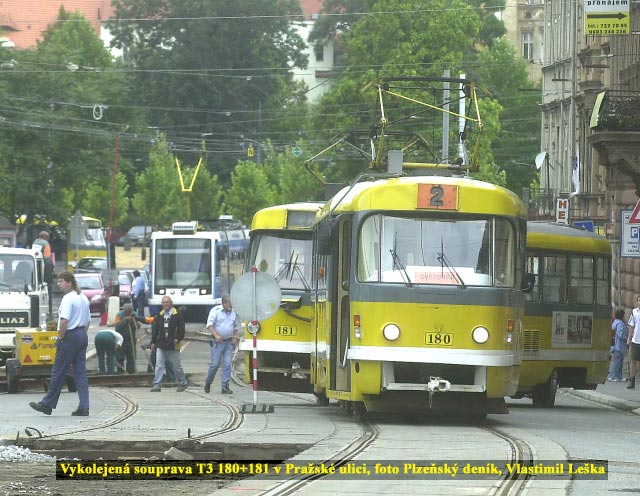 V úterý krátce po čtrnácté hodině došlo k vykolejení zadního vozu soupravy T3 č. 180+181 v Pražské ulici. Při jízdě přes