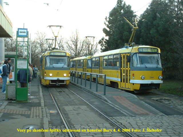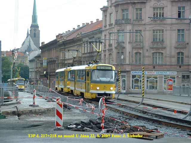 přes novou polovinu mostu U Jána. Několik tramvajových souprav tak po skončení provozu zůstalo na noc na konečných, neboť se neměly kudy dostat o vozovny.