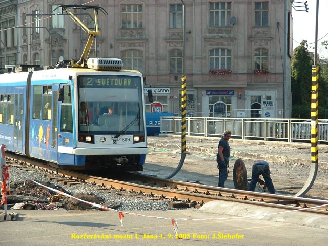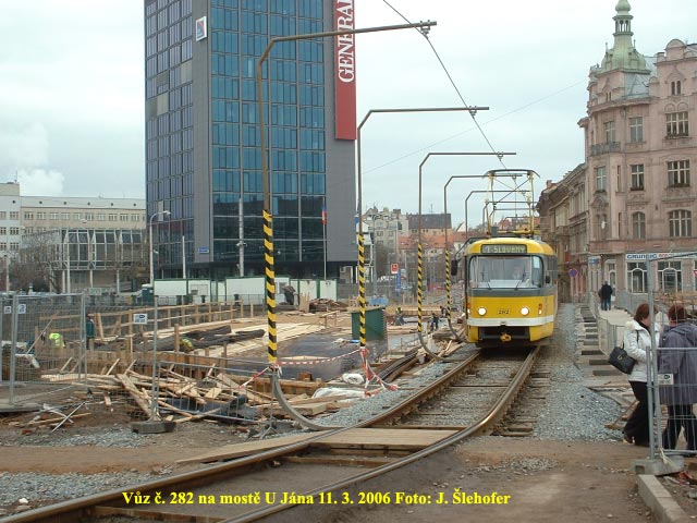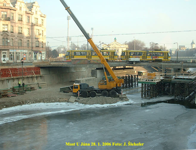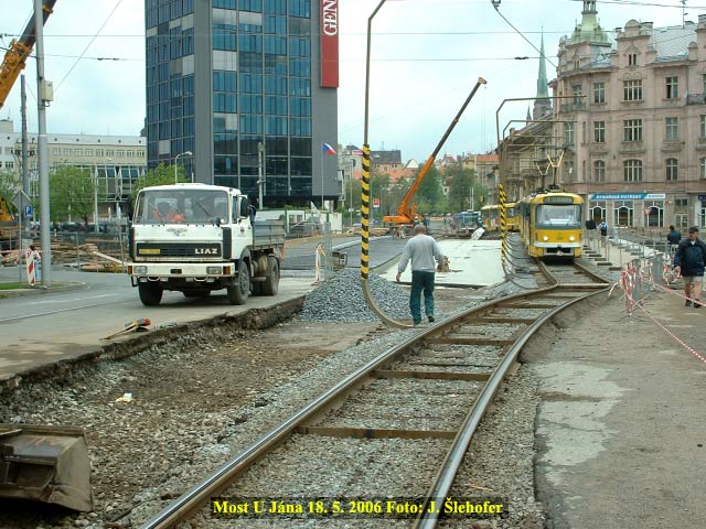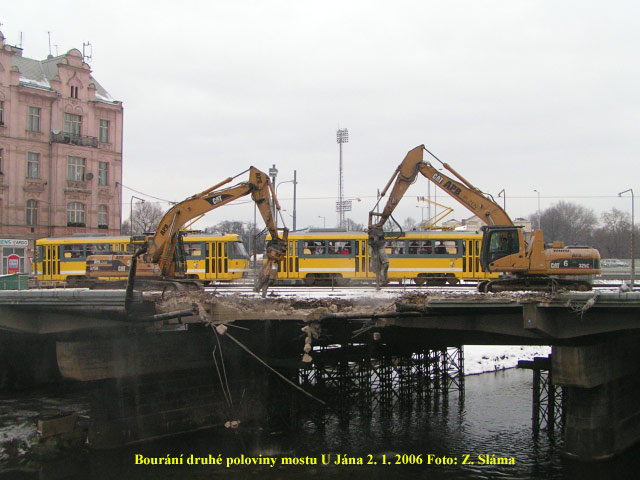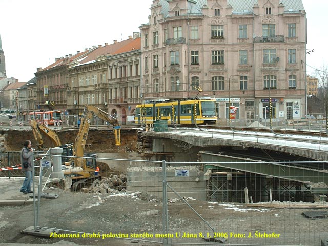V pondělí 3. 4. 2006 krátce po deváté hodině začala plánovaná týdenní výluka tramvajové dopravy přes most U Jána, jehož dvě poloviny