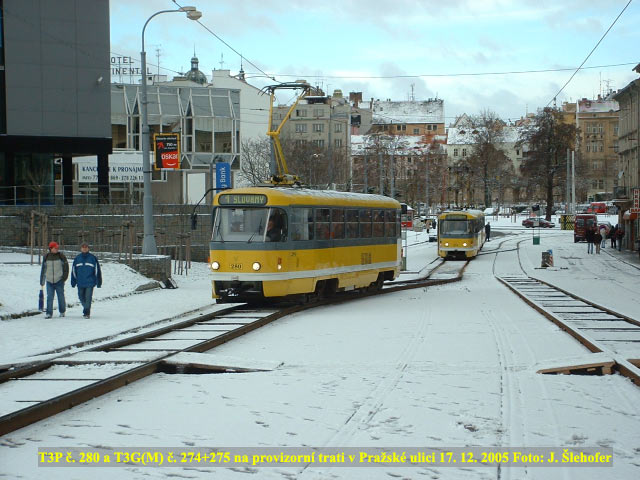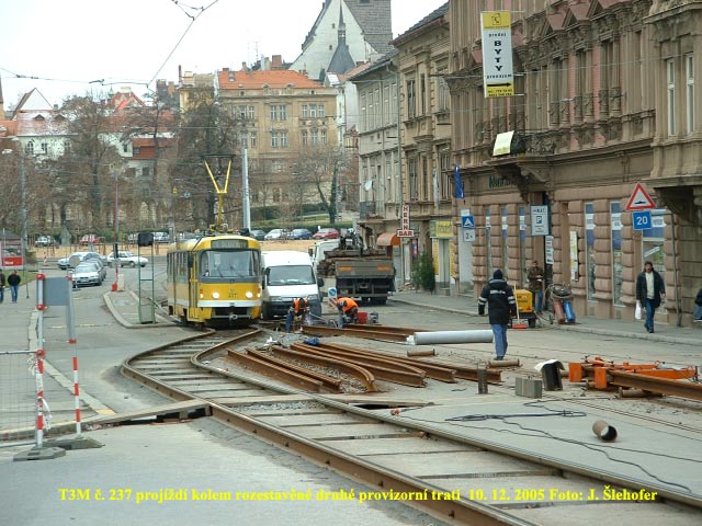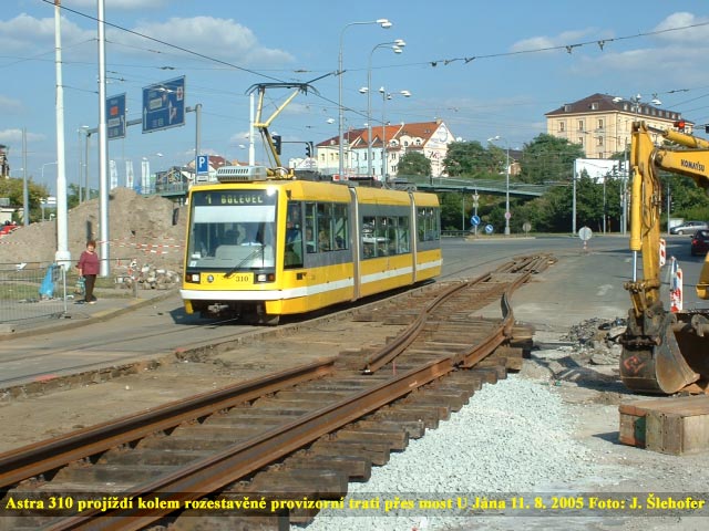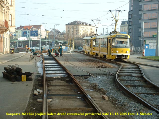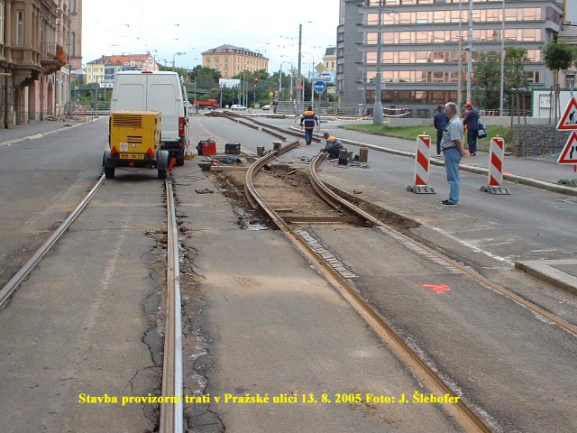 Od 11. 8. 2005 začala stavba provizorní trati. Ta vede v místě původní vozovky, tedy o několik metrů od původního tělesa. Po této jednokolejné trati by měly jezdit tramvaje až do listopadu,