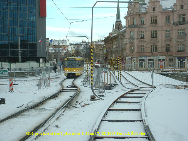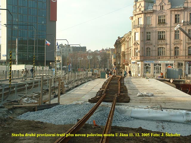 V sobotu 10. 12. 2005 začaly pracovníci DPMB se stavbou druhé provizorní trati, která povede po již dokončené polovině mostu