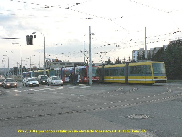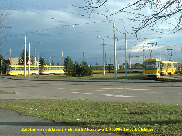 obratišti Mozartova je připravena ještě jedna Astra a pět dalších náhradních souprav. Protože není umožněn tramvajím návrat do vozovny