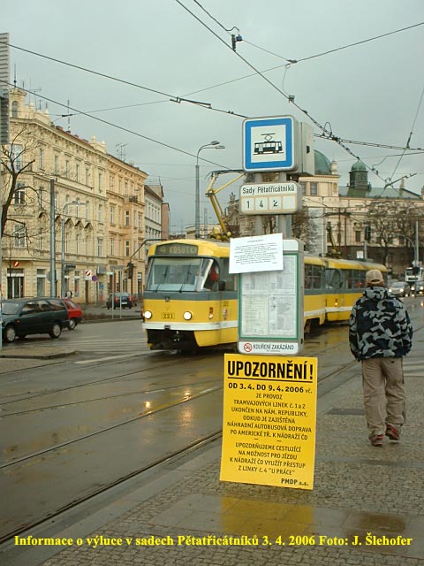 V neděli 11. 6. 2006 po dvaadvacáté hodině začala tramvajová výluka v úseku U Zvonu - Slovany (Světovar) z důvodu přeložení