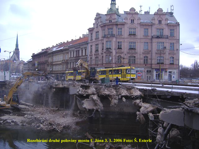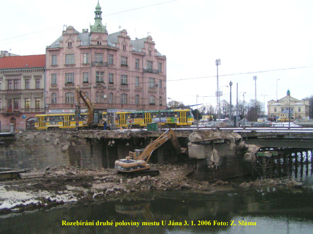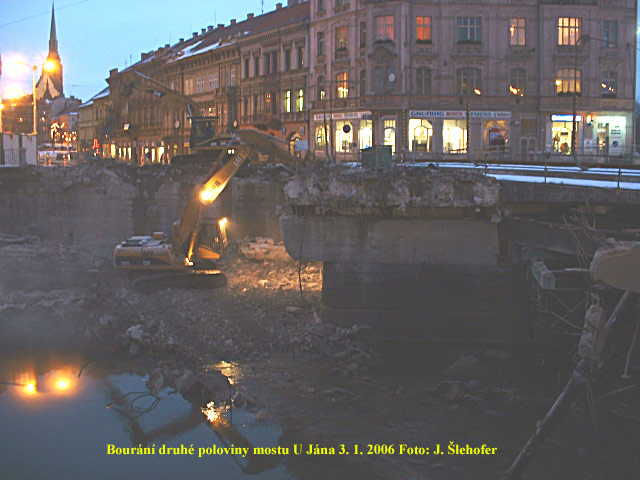 Hned po Novém roce v pondělí, tedy 2. 1. 2006 začali stavbaři s rozebíráním druhé poloviny mostu u Jána.