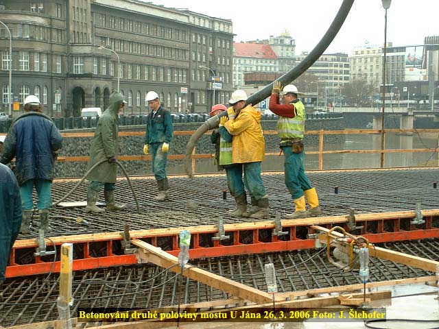 poloviny mostu U Jána. Z betonovaním se začalo v ranních hodinách a do večera byla návodní polovina mostu hotová. Stejně jako při první polovině se používaly dvě pumpy, které chrlily beton na most z