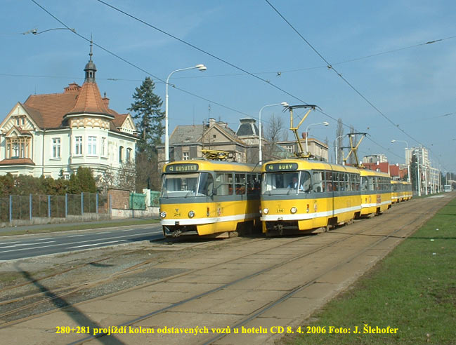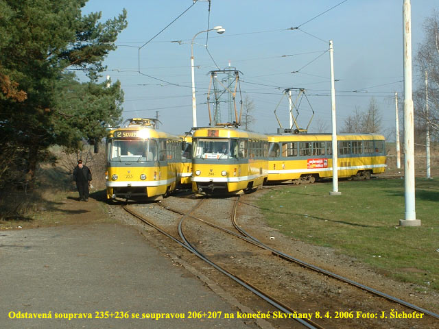 dostatek souprav pro vypravenost v pracovní dny, bylo několik vozů T3M zpět spojeno do souprav (213+214, 221+222, 227+228).