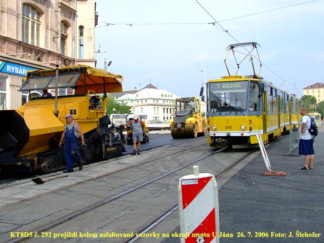 nic nedělalo. Pracovalo se jen vedle kolejí. Koncem srpna byly vztyčeny nové sloupy trolejového vedení na okrajích mostu a