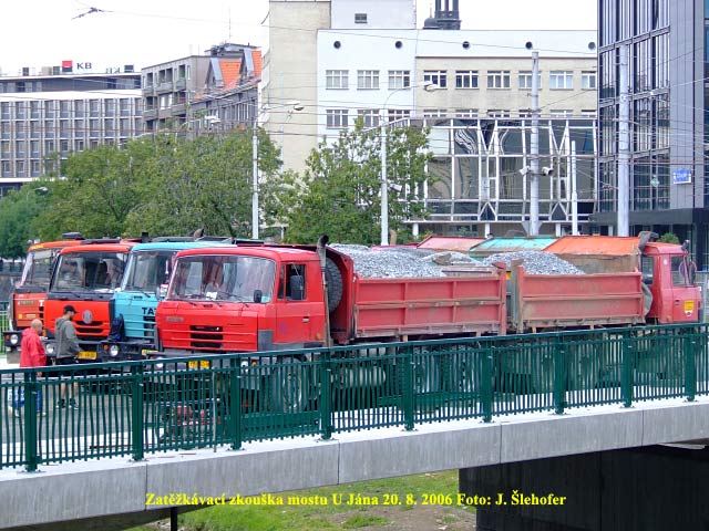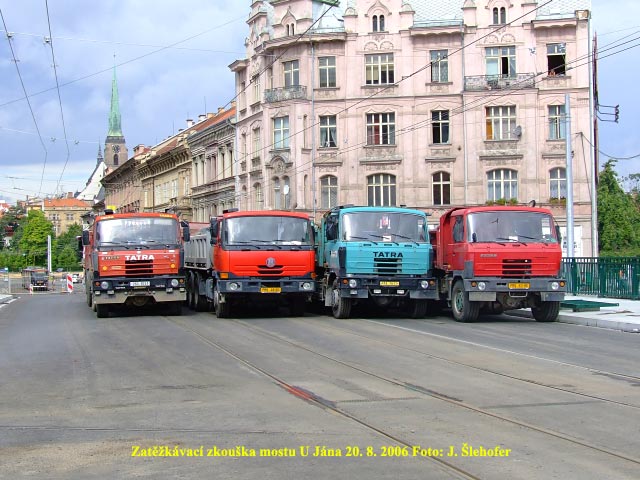 osmi naložených nákladních vozů Tatra. Zatěžkávací zkoušky tak zřejmě udělaly tečku za rekonstrukcí mostu U Jána.