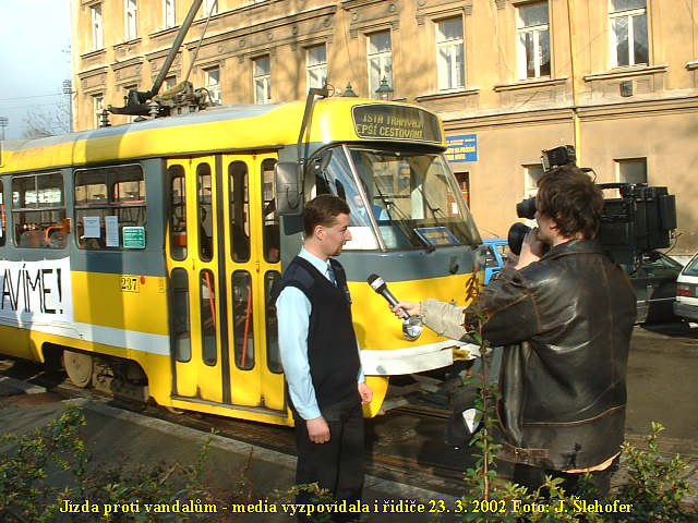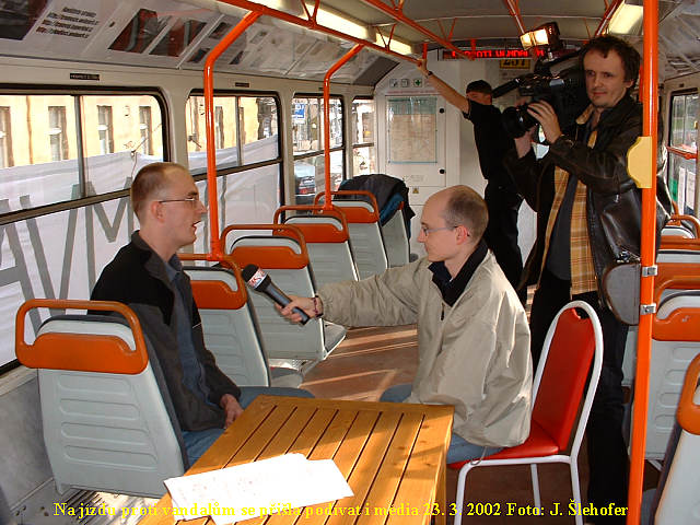 Po natočení rozhovoru s novináři se tramvaj vydala na propagační jízdu přes náměstí Republiky, Sady