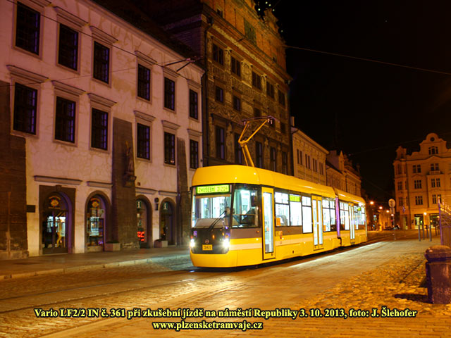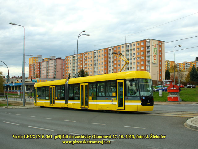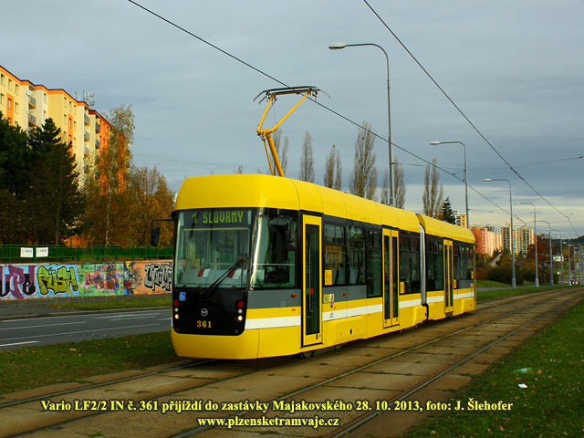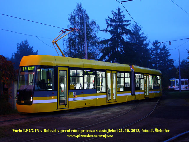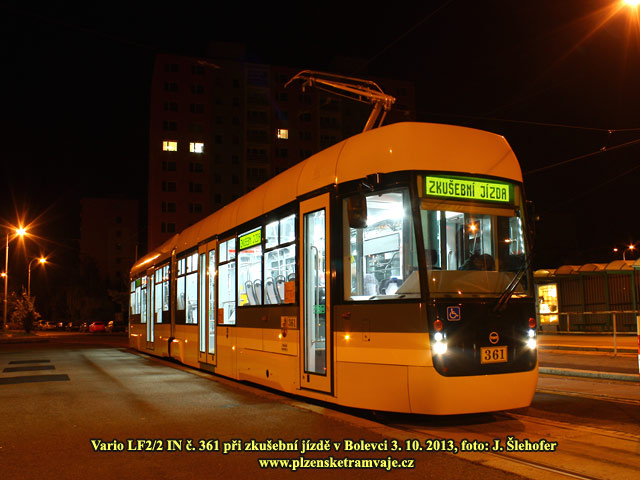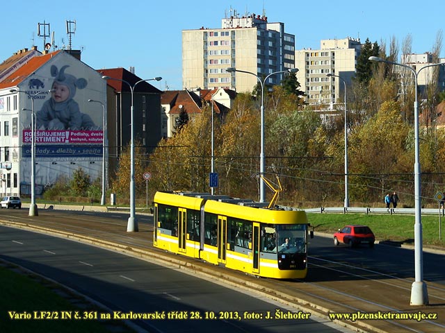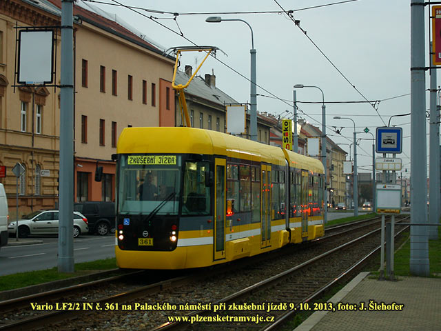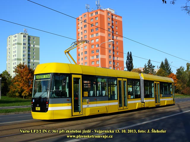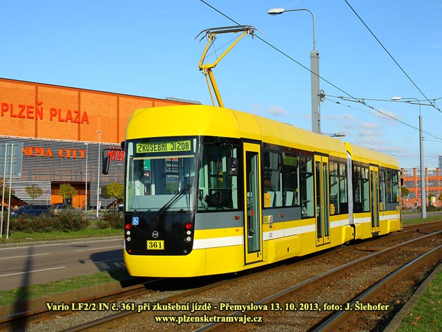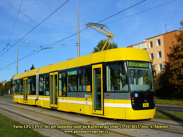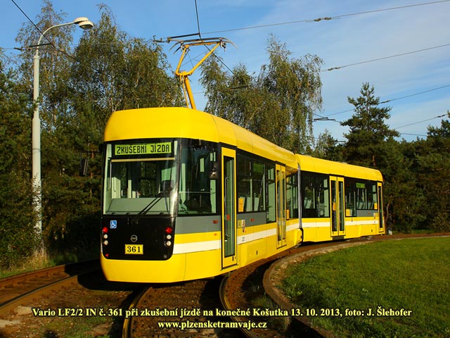 Vario LF2/2 IN č. 361 při zkušební jízdě - Skvrňany, Vejprnická13. 10. 2013 Vario LF2/2 IN č. 361 při zkušební jízdě na konečné Košutka 13. 10. 2013 Vario LF2/2 IN č. 361 při zkušební jízdě - Přemyslova 13. 10. 2013 Vario LF2/2 IN č. 361 při zkušební jízdě na Karlovarské třídě 13. 10. 2013