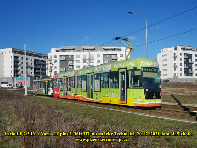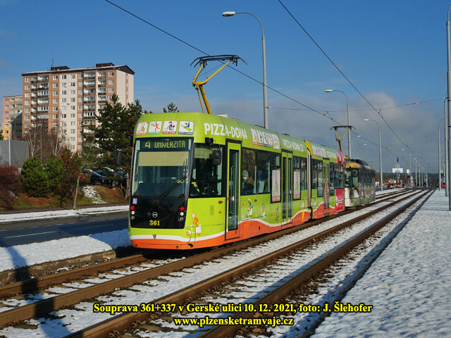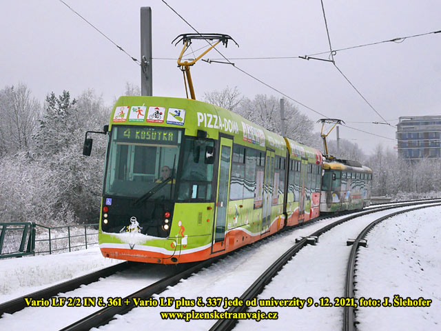 Souprava 361+337 v zastávce Severka 8. 12. 2021 Souprava 361+337 v zastávce Severka 8. 12. 2021 Od 8. 12. 2021 se na lince č. 4 objevuje opět souprava "Inky" s "Pluskem", konkrétně 361+337. Důvodem je údajně opět zkušební provoz po úpravách SW. O dva dny později vyjíždí také druhá souprava 363+336. Původně se mělo jednat o zkušební provoz v délce cca 10 dní, ale nakonec zůstávají v provozu do vánoc.