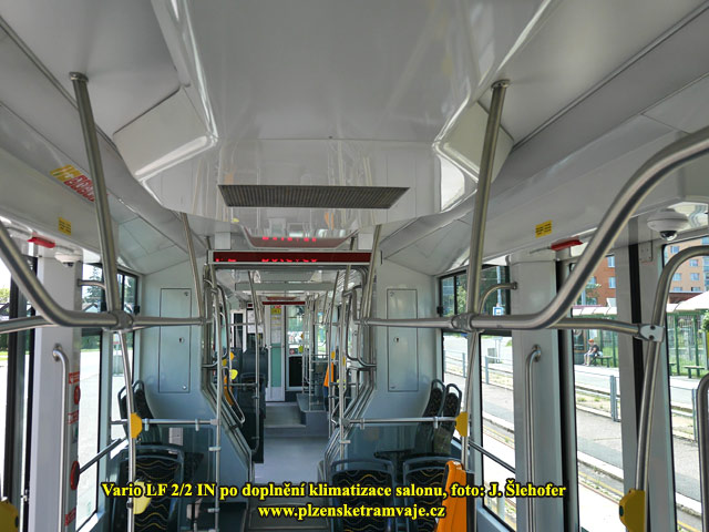 Vario LF 2/2 IN č. 366 v sadech Pětatřicátníků 5. 6. 2024 Interiér Vario LF 2/2 IN s doplněnou klimatizační jednotkou u stropu Na jaře 2024 vyjíždějí vozy 366 a 361 po malé modernizaci u výrobce. Největší změnou je dosazení klimatizace salonu. Vozy tak mají nyní zamčená okna a klimatizace pracuje automaticky se třemi režimy: topí, větrá, chladí. V chladném období pomáhají s topením také podsedáková topidla. Kromě klimatizace dostaly nové potahy sedaček shodné s vozy EVO2 a v kabinách řidiče přibyly zásuvky pro napájení drobných spotřebičů.