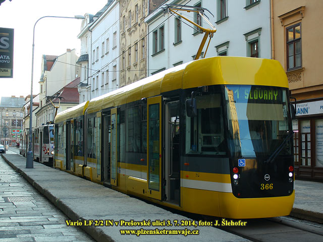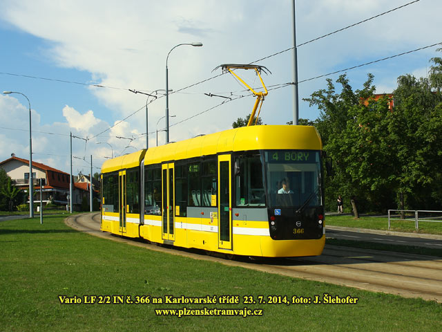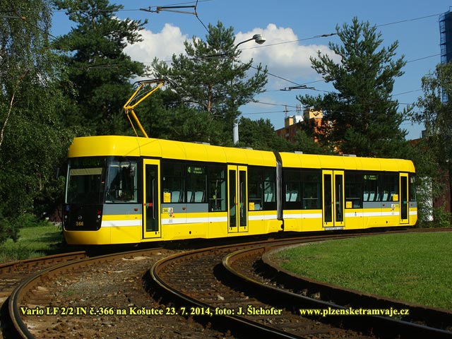 Vario LF2/2 IN č. 366 na Karlovarské třídě 23. 7. 2014 Vario LF2/2 IN č. 366 na Košutce 23. 7. 2014 Neobvykle bylo vypraveno Vario LF2/2 IN č. 366 na linku č. 4 ve středu 23. 7. 2014. Bylo to poprvé, kdy se "Inka" na čtyřce objevila a to místo Astry, které jsou sem při letošních letních prázdninách na dva šejdry vypravovány.