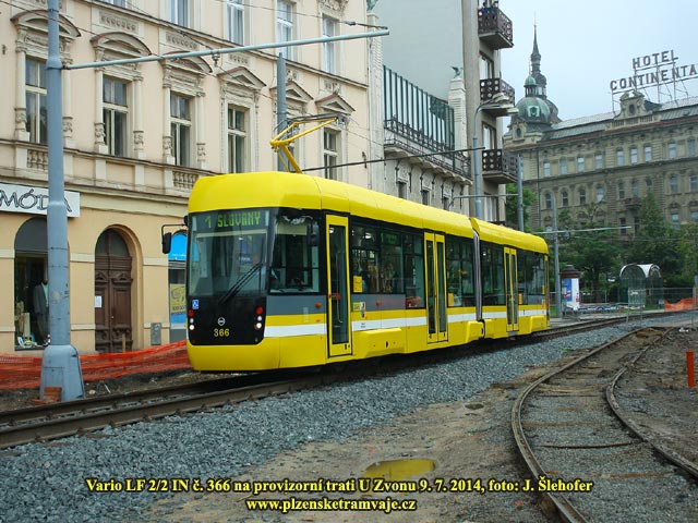 Vario LF2/2 IN č. 366 v provizorní zastávce Prešovská 3. 7. 2014 Vario LF2/2 IN č. 366 na provizorní trati U Zvonu 9. 7. 2014 Během rekonstrukce U Zvonu a jednokolejného provozu na konečnou v Prešovské ulici, jsou ve večerních hodinách místo vozů KT8D5-RN2P nasazeny na lince č. 1 také vozy Vario LF 2/2 IN. Poprvé je tak využita v provozu jejich obousměrnost.