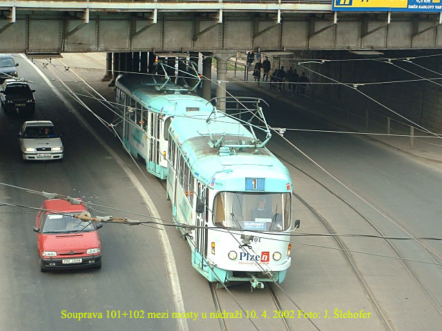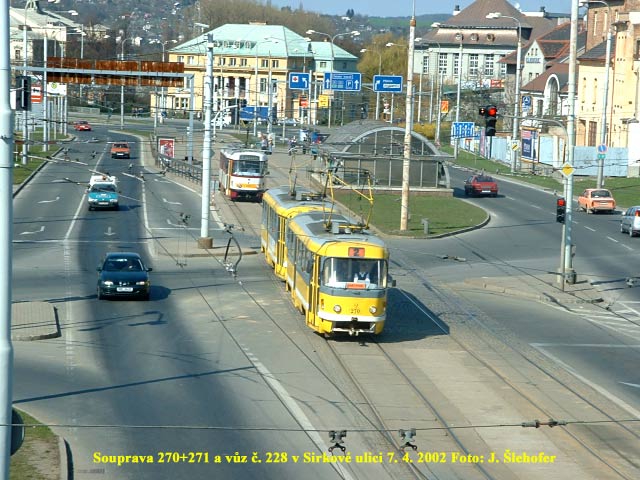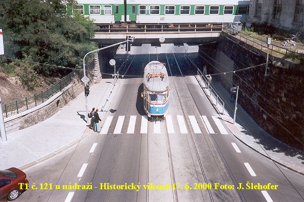 Foto: M. Klas Ze silničního mostu u nádraží mostu se těsně před jeho otevřením dobře fotilo - T1 č. 121 při historickém víkendu 17. 6. 2000 Ze silničního mostu u nádraží mostu se těsně před jeho otevřením dobře fotilo - T1 č. 121 při historickém víkendu 17. 6. 2000 Souprava 101+102 mezi mosty u nádraží 10. 4. 2002 Souprava 270+271 následována vozem 228 v Sirkové ulici 7. 4. 2002 Čajíček u nádraží ČD - 17. 6. 2000