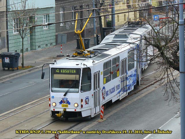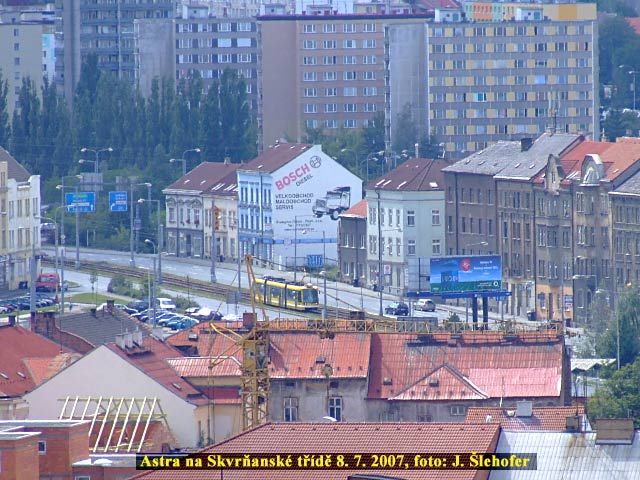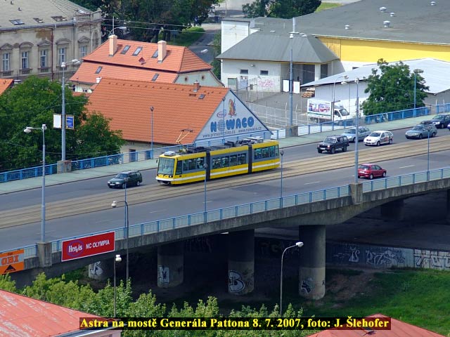 T3P č. 276 na mostě U Jána 10. 2. 2007 KT8D5 č. 298 v Pražské ulici 10. 2. 2007 Astra v sadech Pětatřicátníků 26. 5. 2003 Astra č. 309 v sadech Pětatřicátníků se synagogou 17. 4. 2003