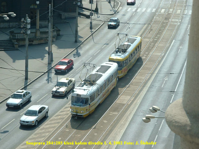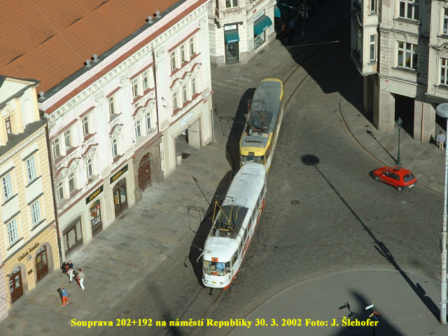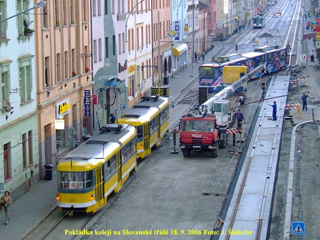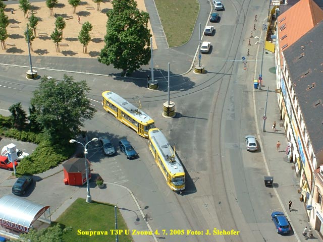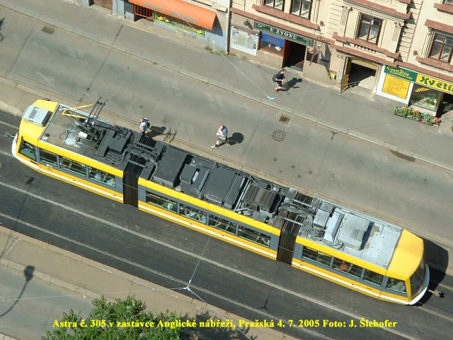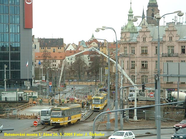 Souprava 202+192 na náměstí Republiky 30. 3. 2002 Souprava T3P U Zvonu 4. 7. 2005 Astra č. 305 v zastávce Anglické nábřeží, Pražská 4. 7. 2005 Most U Jána při betonování jeho poloviny 26. 3. 2005