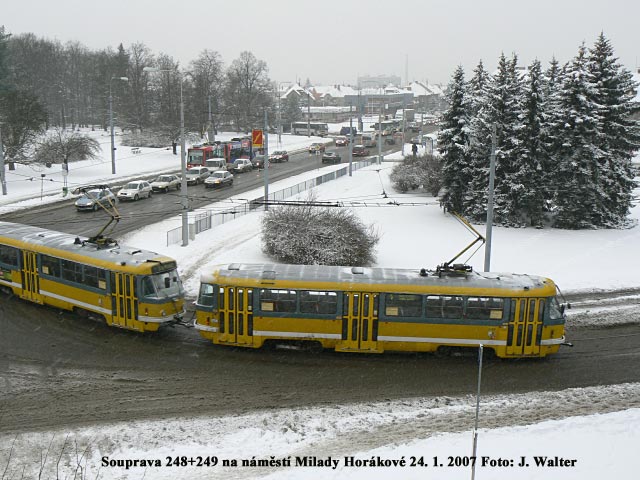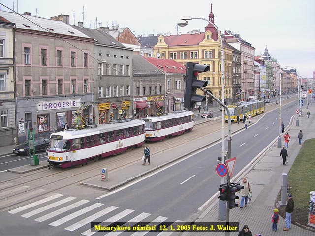 Foto: J. Walter Masarykovo náměstí se soupravou T3M a vozem KT8D5 12. 1. 2005