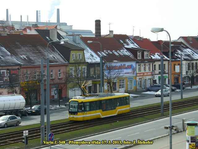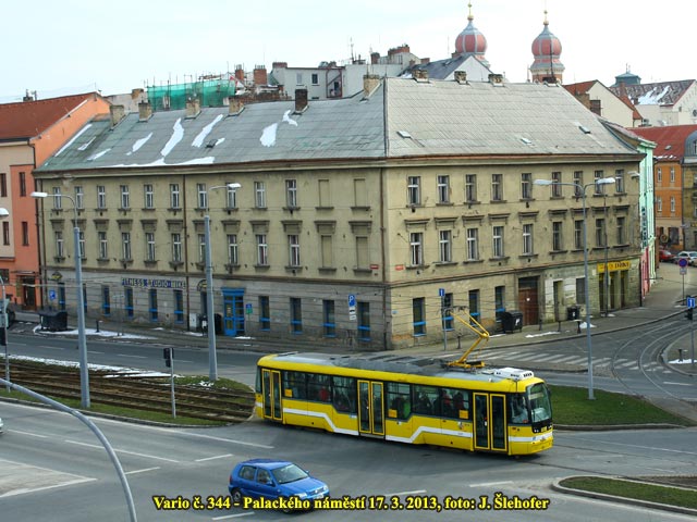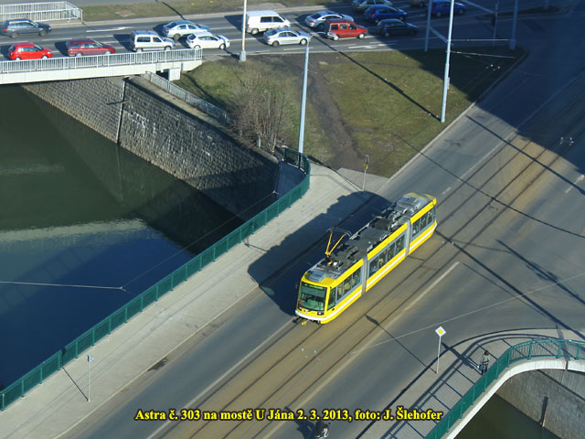 2. 12. 2012 Vario č. 344 na Palackého náměstí 17. 3. 2013 Vario č. 348 - Přemyslova třída 17. 3. 2013 Astra č. 303 na mostě U Jána 4. 3. 2013