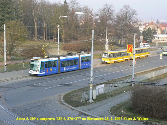 Foto: J. Walter Astra 309 a souprava 276+277 na náměstí Milady Horákové 23. 2. 2007