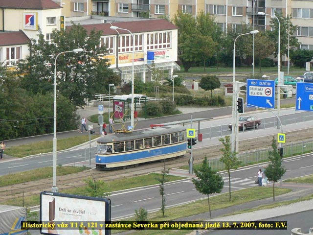 Historický vůz T1 v zastávce Severka 13. 7. 2007