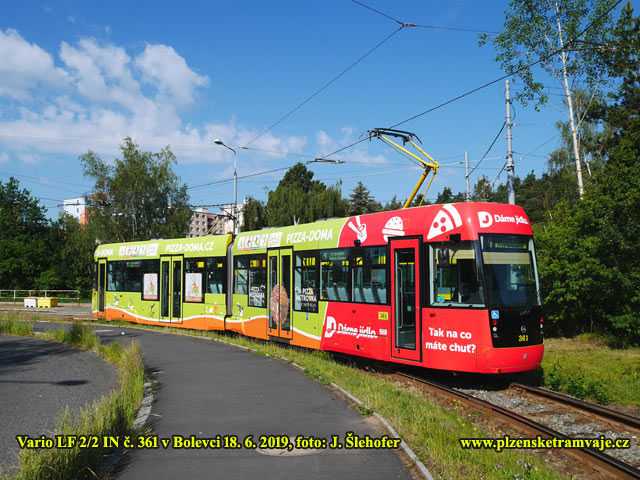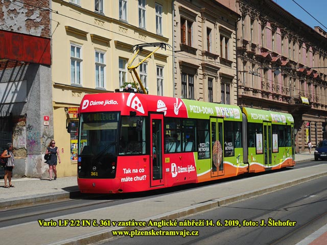 Od 10. 6. 2019 jezdí Inka č. 361 v barevném kabátku inzerentů PIZZA DOMA a DÁME JÍDLO. Až na mimořádnosti se