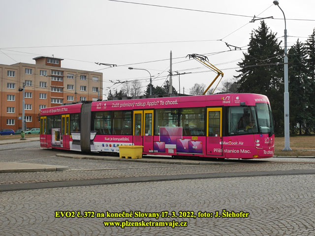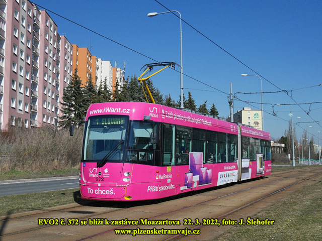 Tramvaj EVO2 č. 372 se 17. 3. 2022 objevuje v provozu na lince č. 1 s novou reklamou. Propaguje prodejce elektroniky iWant. Díky nápadně růžové barvě jí však prakticky nikdo neřekne jinak, než "Růžovka". V provozu v této podobě byla jeden rok. V březnu 2023 je pak již opět žlutošedá.