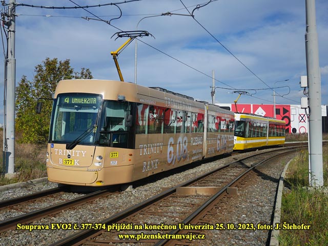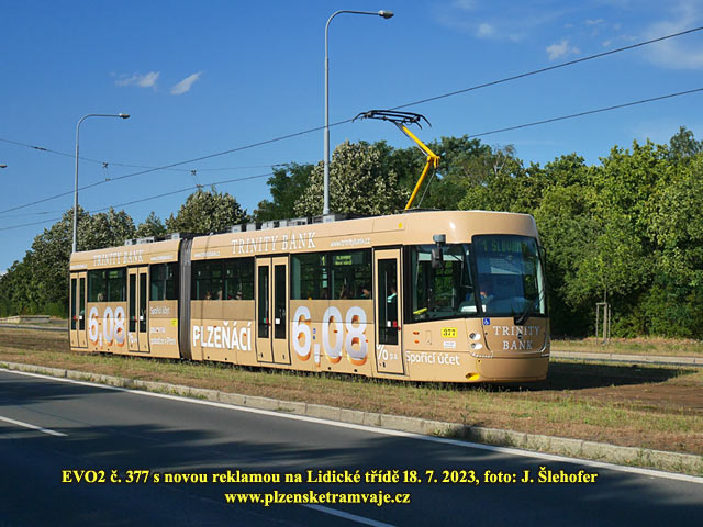 Od 18. 7. 2023 je na voze EVO2 č. 377 v provozu nová reklama. Vůz se zlatým polepem propaguje spořící účet TRINITY BANK. S drobnými obměnami (např. úroková sazby) je v této podobě do poloviny července 2024.