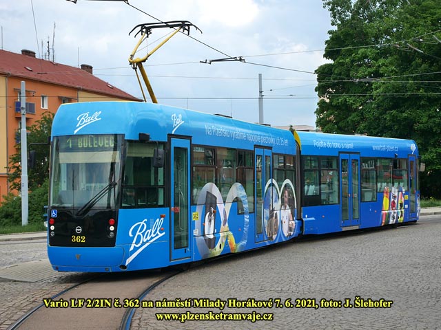 V červnu 2021 je na voze 362 nová reklama firmy Ball v modré barvě. Výrobce plechovek z Dýšiné také plánuje stavby nových výrobních hal v Plzni na Borských polích. V modré podobě jezdí vůz 362 cca do konce roku 2021.