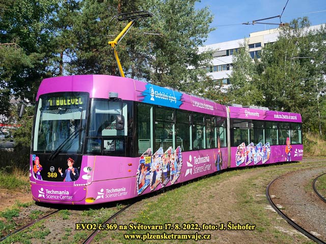 dva roky a tak lze očekávat, že se reklamy již mohou na nich také objevovat. Tramvaj č. 369 tak svým polepem propaguje science center Techmania.