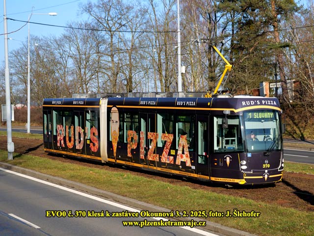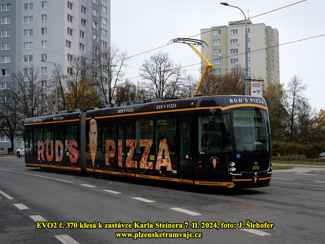 Celovozová reklama na dalším voze EVO2, konkrétně č. 370, je v provozu od začátku listopadu 2024. Tvoří ji převážně černý polep s výrazným nápisem RUD´S PIZZA.