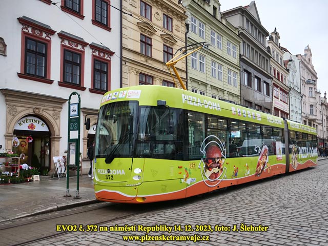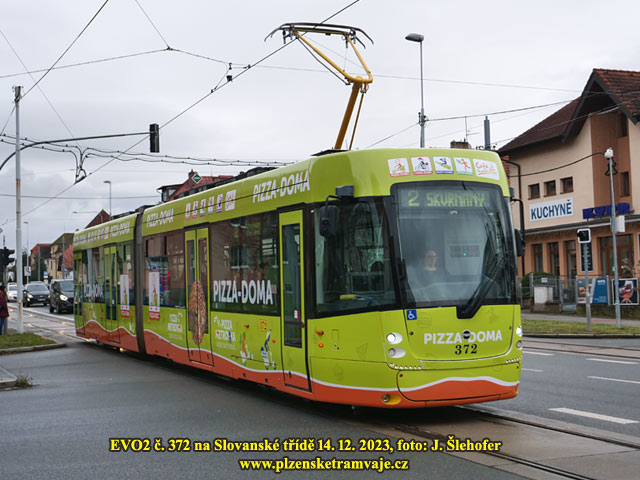 V polovině prosince 2023 vyjíždí tramvaj EVO2 č. 372 s novým celovozovým polepem Pizza Doma. Reklama je podobná, jako bývala na voze Vario LF 2/2 IN č. 361.