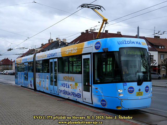 Poslední březnový den roku 2025 vyjíždí do pravidelného provozu vůz č. 373 s novým modrobílým polepem na krémy Nivea.