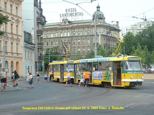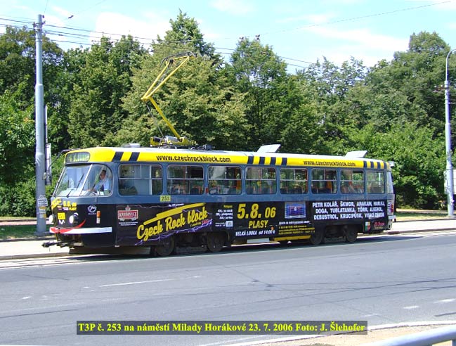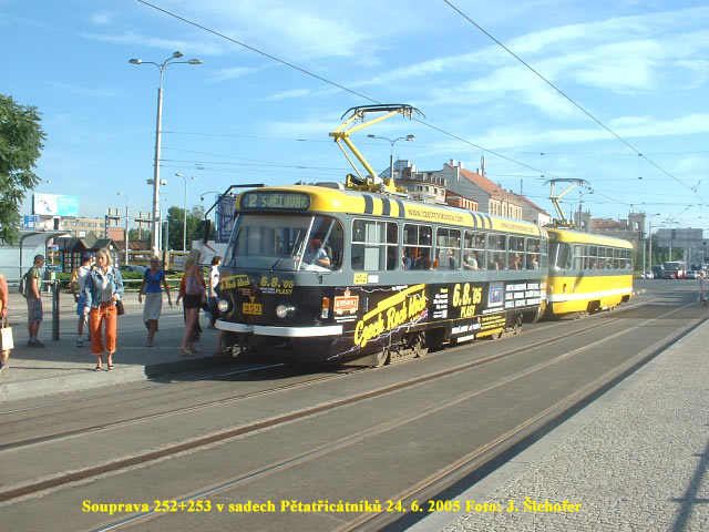 243+244  U Zvonu při výluce 25. 6. 2005 Souprava 252+253 v sadech Pětatřicátníků 24. 6. 2005 Od 17. 6. 2005 je na ostravském progressu 243 ze soupravy 243+244 reklama Moje město Plzeň (střídají se zde reklamy na akce podporované městem). O týden později, tedy 24. 6. 2005 se na předním voze další soupravy T3P modernizované v Ostravě objevila reklama na Czech Rock Block Plasy. V této podobě jezdil vůz do poloviny srpna.
