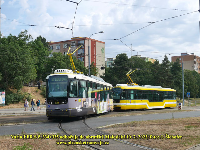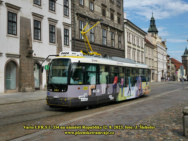 Vario LFR.S č. 334 na náměstí Republiky 12. 8. 2023 Vario LFR.S č. 334+335 odbočuje od obratiště Malesická 10. 7. 2023 V červenci 2023 vyjíždí vůz Vario LFR.S č. 334 s reklamnou na nějaké pohybové aktivity. Vlastně jsem do teď zcela nepochopil na co přesně reklama je, tak možná nejsem ta správná cílová skupina. Reklama byla v provozu do července 2024.