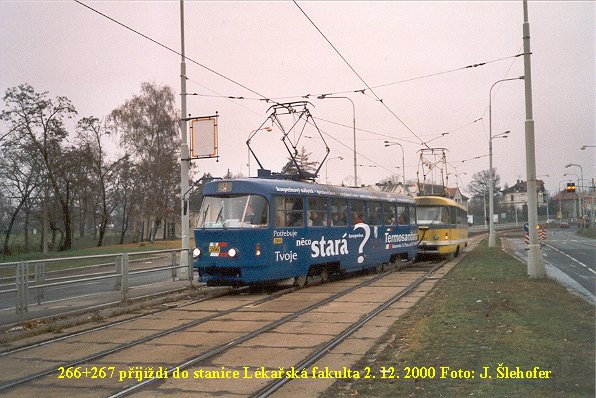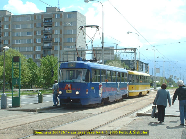 Souprava 266+267 v zastávce Severka 4. 5. 2005 Souprava 266+267 v ulici Terezie Brzkové 29. 12. 2005 V létě 2004 se no modrém voze č. 266 po reklamách Thermosanitaria a Čedok (viz výše) objevily reklamy zvoucí na zápasy plzeňského FC Viktoria. Během roku 2006 však již dojezdí.