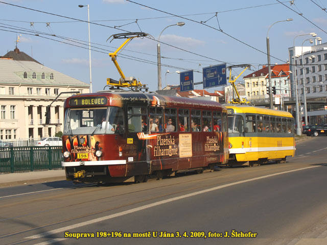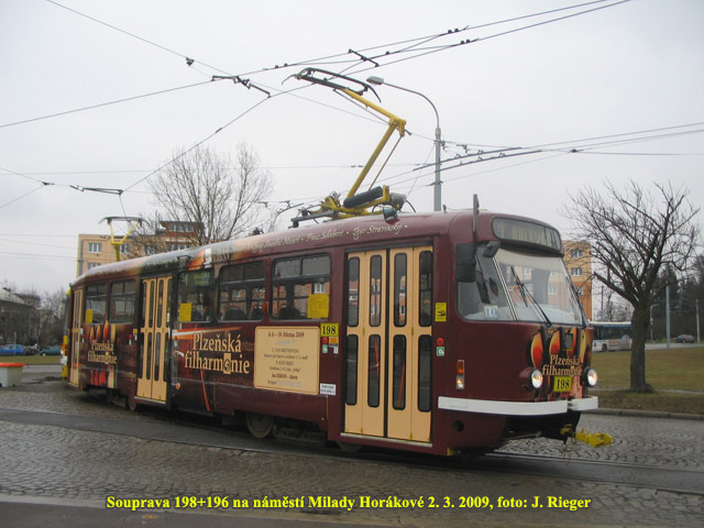 Souprava 198+196 na náměstí Milady Horákové 2. 3. 2009, foto: J. Rieger Souprava 198+196 na mostě U Jána 3. 4. 2009 Od pondělí 2. 3. 2009 pak vyjíždí vůz 198 (ze soupravy 198+196) s novou reklamou Plzeňské filharmonie. Reklama je velmi podobné té z vozu 278, kterou vlastně nahradila, neboť od stejného dne je vůz 278 bez reklamy. Na voze 198 je reklama až do listopadu 2012.