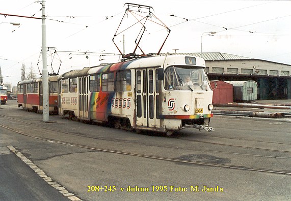 Foto: L. Jandová 208+245 ve vozovně Slovany v dubnu 1995