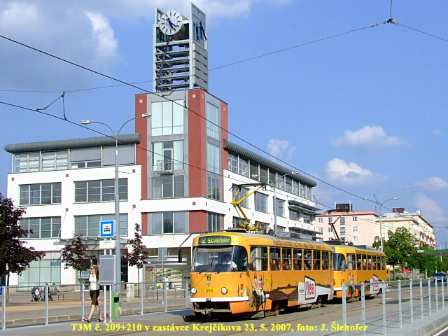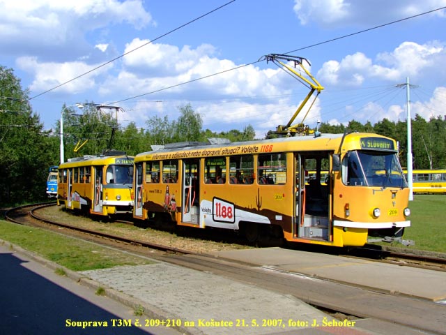Souprava T3M č. 209+210 na Košutce 21. 5. 2007 Souprava T3M č. 209+210 v zastávce Krejčíkova 23. 5. 2007 V pondělí 21. 5. 2007 se na odpoledním šejdru linky č. 4 objevila souprava T3M č. 209+210 s novou reklamou na informační a asistenční telefonní službu 1188. Polep ještě nebyl v té době (zejména na zadním voze) zcela dokončen.