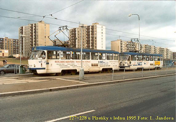 Foto: L. Jandová 227+228 u Plzeňky v lednu 1995