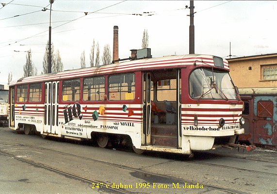 Foto: M. Janda 247 ve vozovně Slovany v dubnu 1995, krátce před odesláním na modernizaci do Škody DT