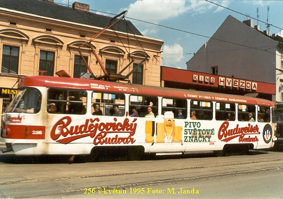 202+192 s reklamou na Budvar v lednu 2001 - současná podoba Vůz 256 s reklamou na Budvar v roce 1995 202+192 s reklamou na Budvar v srpnu 2000
