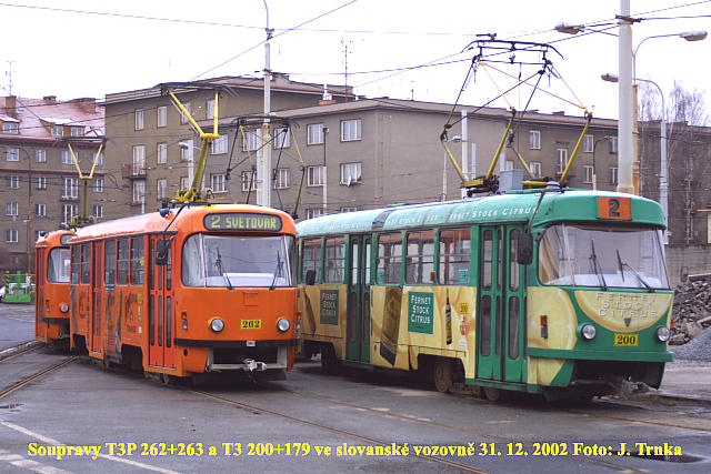 Aktuální fotografie soupravy T3P 262+263 s novou reklamou na Fernet Stock Orange na Klatovské třídě Vzácné setkání souprav 262+263 a 200+179  - obě s reklamou na Fernet Stock.  Foto: J. Trnka Reklama na T mobile na soupravě T3P 262+263 však vydržela jen půl roku a od 23. 12. 2002 vozila rok na sobě Fernet Stock Orange. Hned jak se objevil Fernet Orange, zmizela z vozů 200+179 dlouholetá a velmi zdařilá reklama na Fernet Stock Citrus. V provozu v této podobě byla naposledy 6. 1. 2003. Nyní je reklama sloupaná a souprava jezdí v zeleném nátěru. Obě soupravy s reklamou na Fernet se tak mohly potkávat jen přibliženě dva týdny.