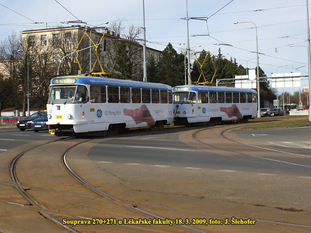 Souprava 270+271 u Lékařské fakulty 18. 3. 2009 Souprava 270+271 zatahuje se závadou kolem Hlavního nádraží v aprílovém dni 19. 3. 2009 O dva dny později vyjíždí stejná reklama i na soupravě 270+271. Ta se takto v provozu objevuje po právě prodělané velké prohlídce. Jedná se celorepublikovou kampaň a stejné tramvaje tedy najdeme i v dalších městech. V této podobě jsou přesně rok a koncem března 2010 jsou již ve své původní žlutošedé podobě.