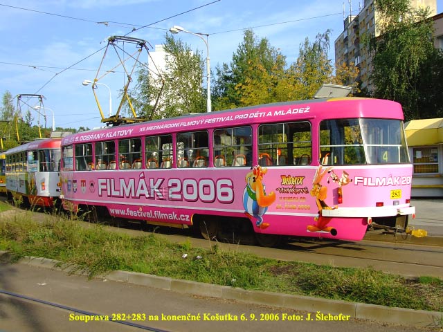 Souprava 282+283 přijíždí do sadů Pětatřicátníků 6. 9. 2006 Souprava 282+283 na konečné Košutka 6. 9. 2006 Reklama na dětský filmový festival Filmák se objevila 6. 9. 2006 na voze č. 283. Růžová podoba tramvaje je opět velmi podobná loňskému provedení. Ve stejnou dobu byla také doplněna reklama na voze č. 282, jejíž součástí jsou pozvánky na aktuální akce, které podporuje město Plzeň.