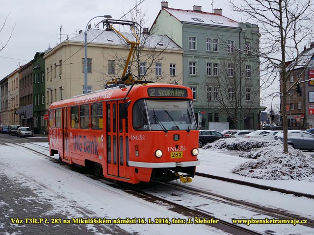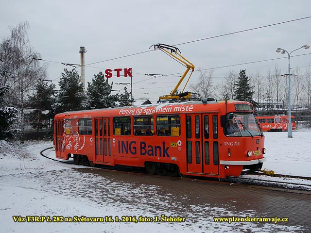 vůz 282 s reklamou na ING na konečné Světovar 16. 1. 2016 vůz 283 s reklamou na ING na Mikulášském náměstí 16. 1. 2016 Od 16. 1. 2016 mají vozy č. 282 a 283 reklamu ING Bank, shodnou jako byla na vozech č. 217 a 218, viz výše. Vozy 217 a 218 totiž čeká cesta do dílen, kde projdou Velkou prohlídkou a reklama z nich tedy zmizí. Na vozech 282 a 283 je reklama přesně rok.