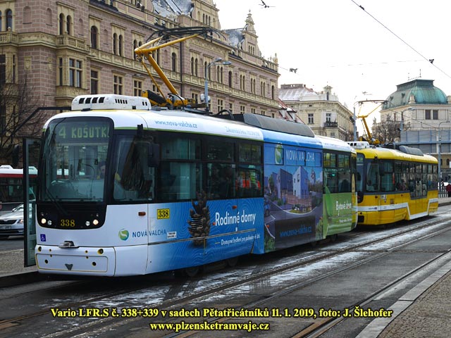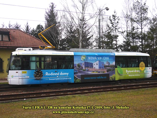 Souprava Vario LFR.S č. 338+339 v sadech Pětatřicátníků 11. 1. 2019 Souprava Vario LFR.S č. 338+339 na konečné Košutka 17. 1. 2019 V lednu vyjíždí Vario LFRS č. 338 s reklamou na projekt bydlení Nová Valcha. Poprvé v ulicích je k vidění v pátek 11. 1. 2019. Na voze je přibližně rok. Bez reklamy je následně k vidění v lednu 2021.