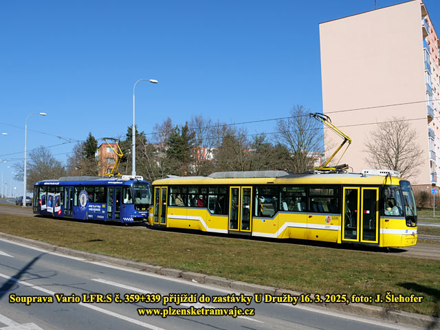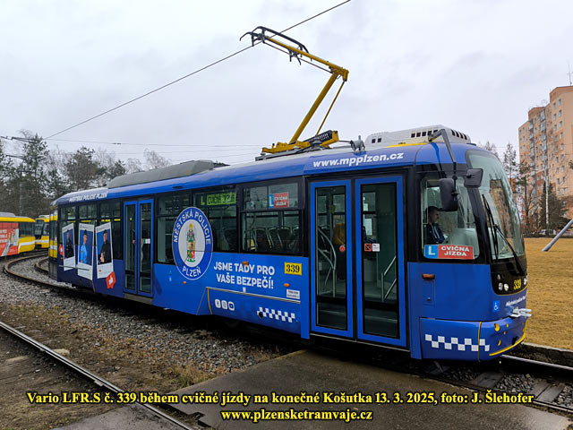 Vario LFR.S č. 339 během cvičné jízdy na konečné Košutka 12. 8. 2025 Vario LFR.S č. 339 během cvičné jízdy na konečné Košutka 12. 8. 2025 Na tramvají Vario LFR.S č. 339 se objevuje nová reklama Městské policie Plzeň. Poprvé vyjíždí dne 13. 3. 2025, kdy se vůz po městě pohybuje během cvičných jízd právě probíhajícího kurzu nových řidičů. Od následujícího dne je v provozu jako zadní vůz soupravy 359+339, avšak i dle čísel je patrné, že jde o soupravu dočasnou.